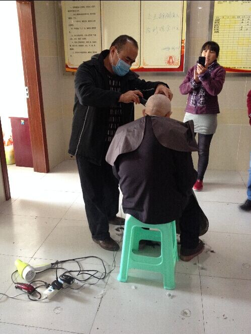 我院工作人员给老人剃头